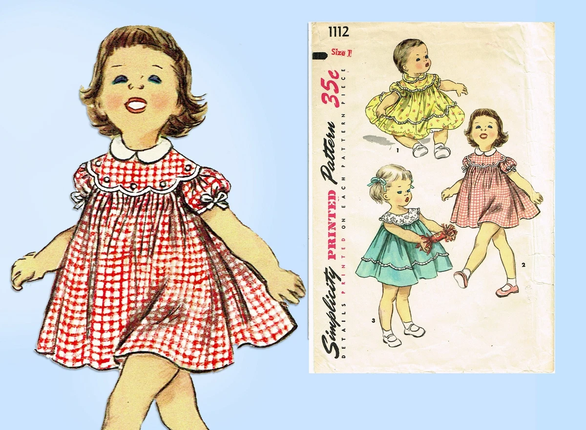 1950s Vintage Simplicity Sewing Pattern 1112 Cute Baby Girls Flared Dress Size 1 Ebay