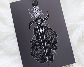 Dagger Tattoo Art Black And White Neotraditional Art Print Etsy Australia